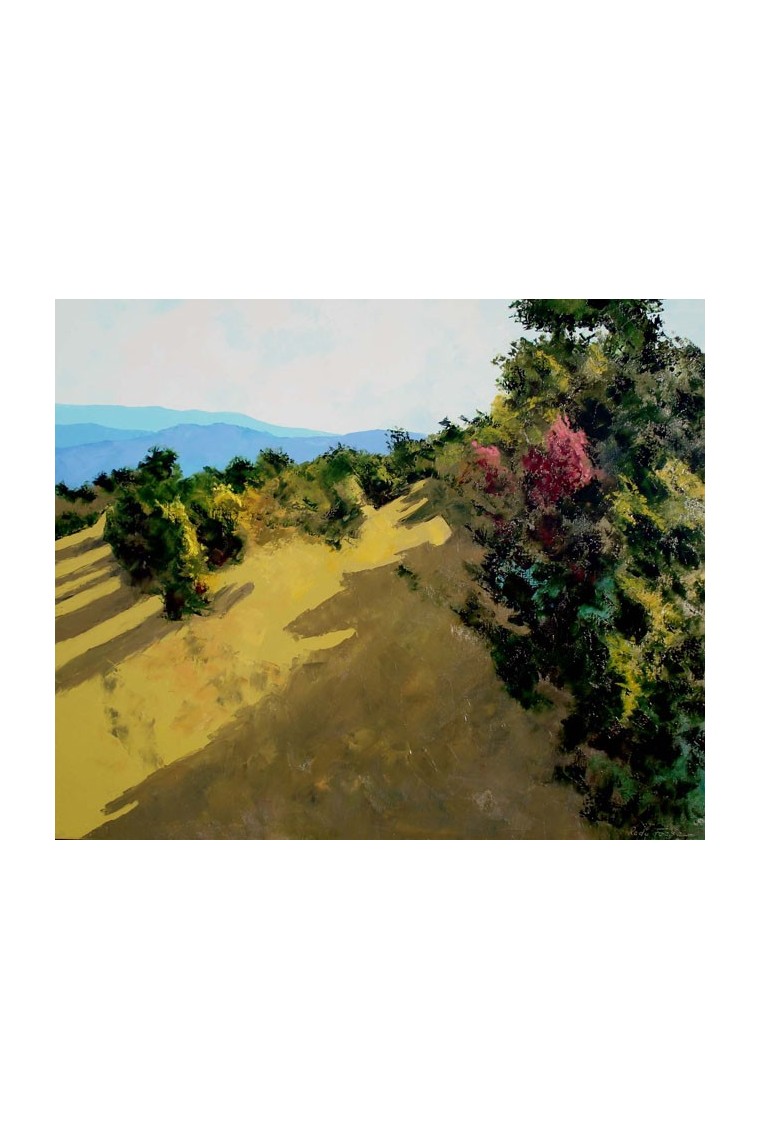 Diese Leinwand stellt einen Ort in der Nähe meines Hauses in Gordes dar, an dem ich gerne spazieren gehe und an dem alles gemalt wird.