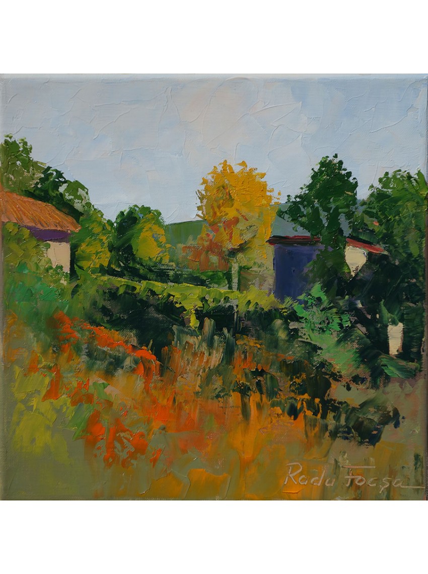 Angezogen von den Farben des Spätsommers und dem Plastik dieses Gartens hinter dem Haus, beschloss ich, meine Staffelei aufzustellen und dieses Licht einzufangen.