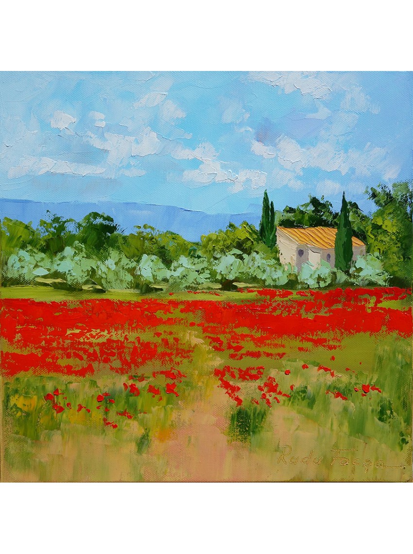 Landschaft mit Mohnblumen im le Luberon - Messer Malerei gemacht im Freien.
