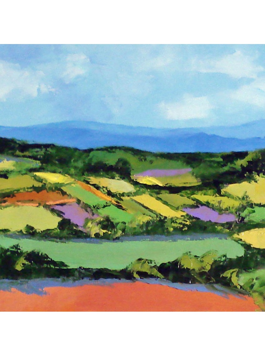 Peinture au couteau réalisée en atelier d’après les esquisses à l’huile que le peintre a fait sur le motif.