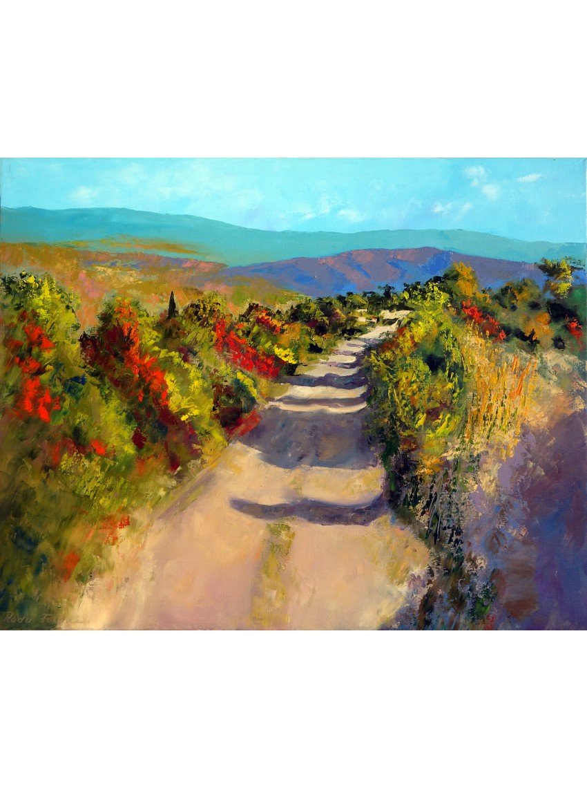 La toile représente un chemin de randonnée qui passe prés du fameux village de Gordes dans le sud de la France, en Provence.