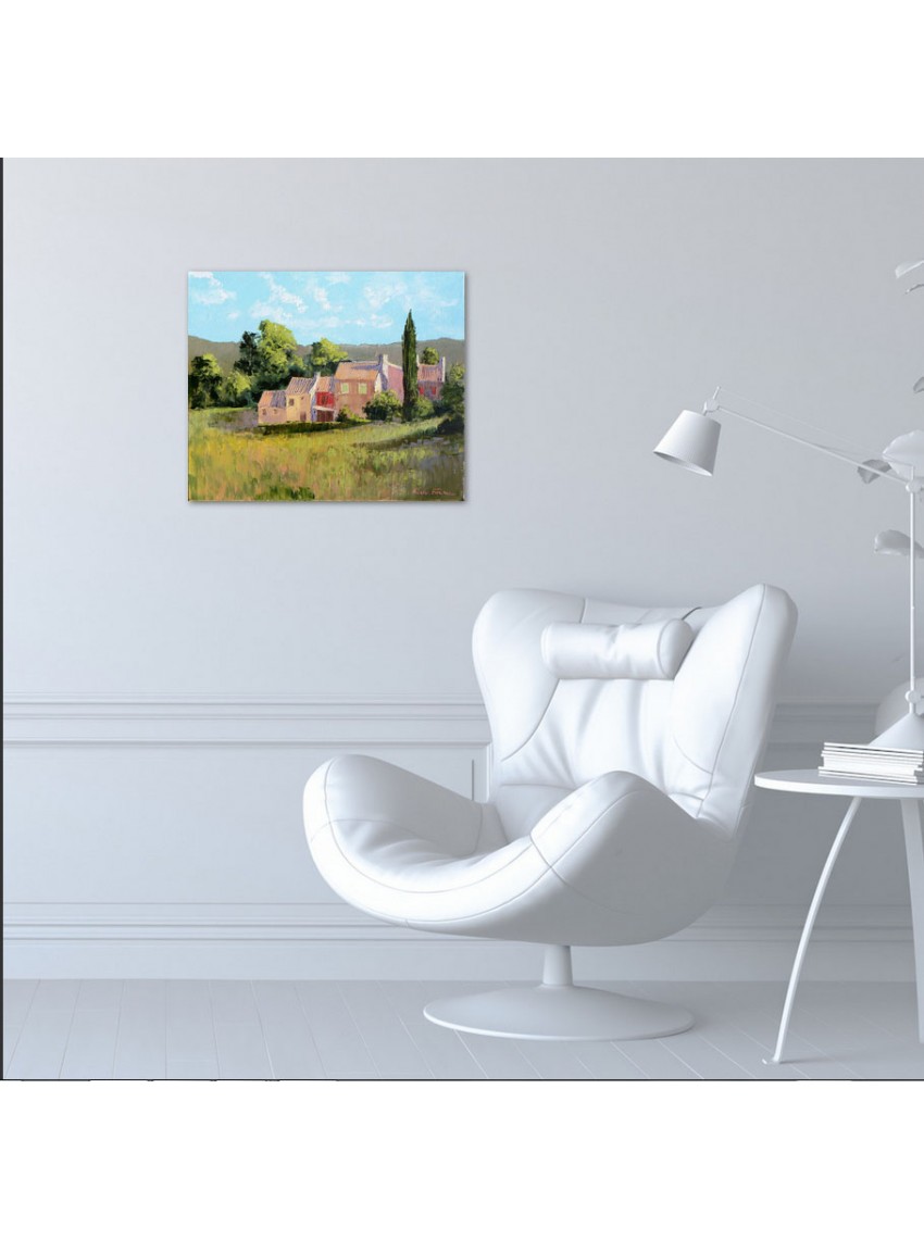 Paysage à l'huile sur toile, peint près du village de Roussillon, dans le Luberon.