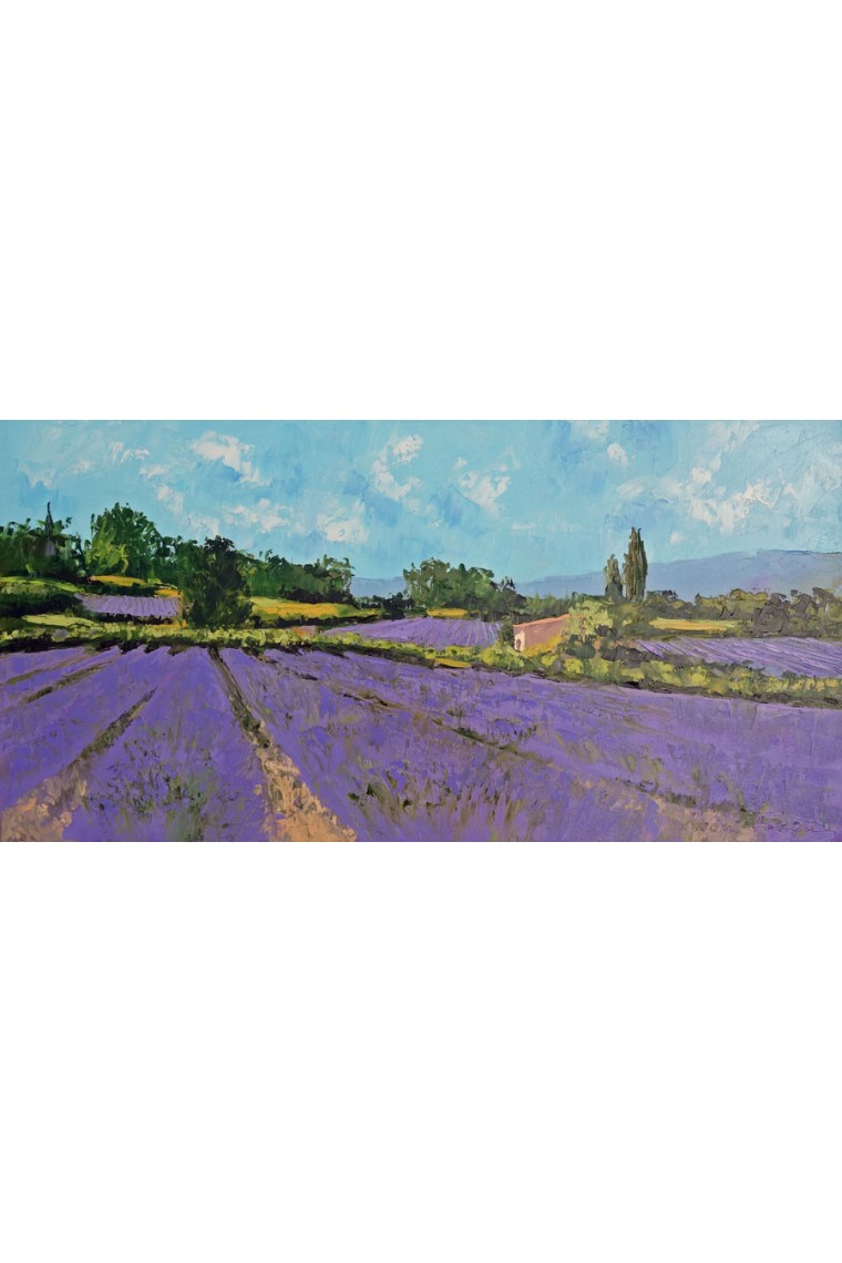Paysage avec lavande près de Gordes, - peinture au couteau réalisée en plein air.