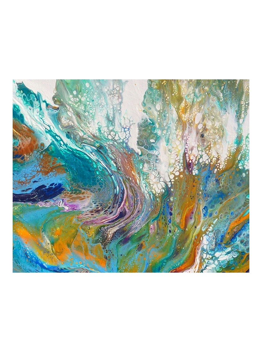 Lucrare pe pânză cu tehnici mixte, pigmenți și vopsea acrilică.