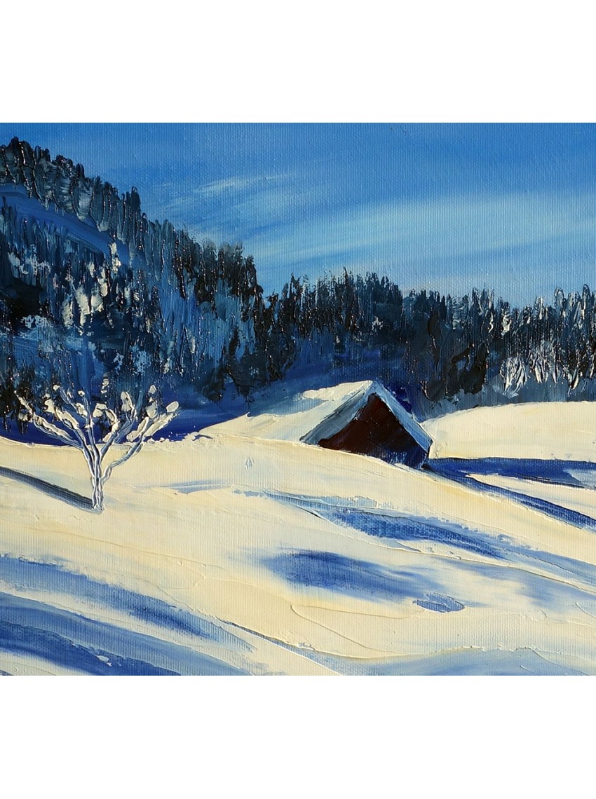 Ulei pe pânză, peisaj cu zapada, pictat în apropiere de satul Courchevel în ALPI.