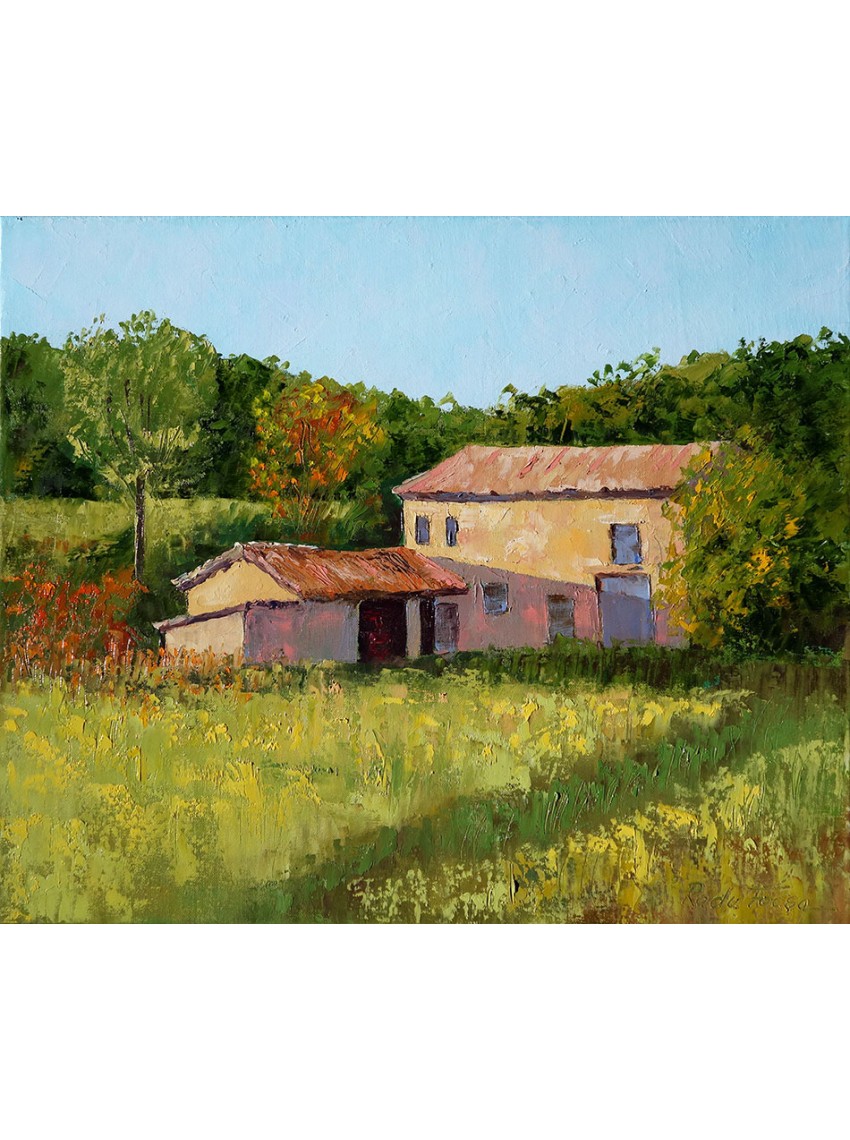 Pictură în ulei pe pânză, făcută cu un cuțit, realizată în aer liber, în Provence, lângă Lacoste, nu departe de castelul marchizului de Sade, în Luberon.