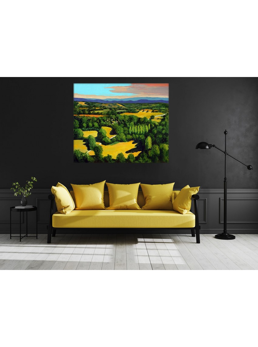 Pictură în ulei pe pânză făcută cu cuțitul, pe motiv în aer liber, în Provence.