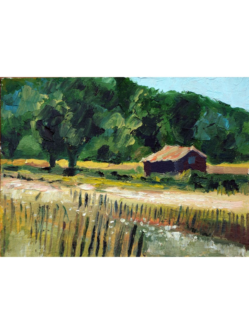 Pictură realizată pe motif în aer liber, lucrată cu pensula si cuțitul.