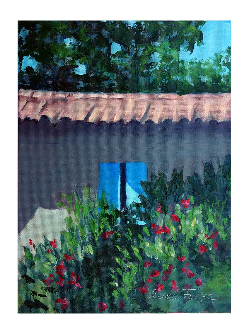 Pictură realizată pe motif în aer liber, lucrată cu pensula si cuțitul.